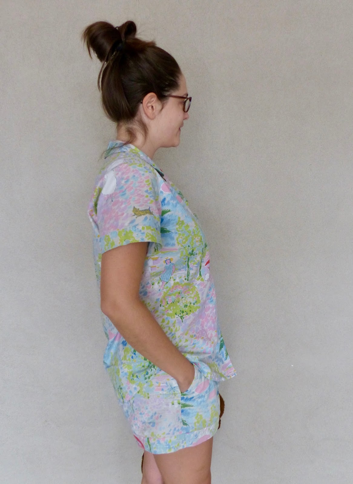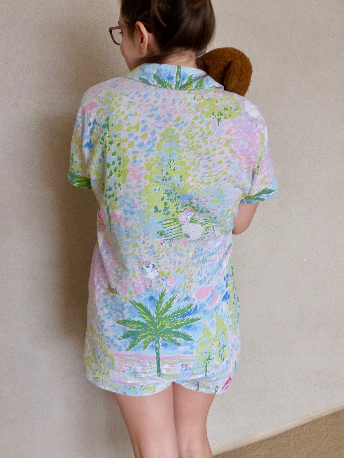 From the shoulder seam to the armpit, this is the Lago Tank, and from the start of the side seam (just under the armpit) to the hem, it's a lengthened Ebony tunic. Well, I say "hem" but I did not bother hemming this -- just didn't feel like dealing with it, so I chopped it to the length I wanted once I was done with the very quick construction.